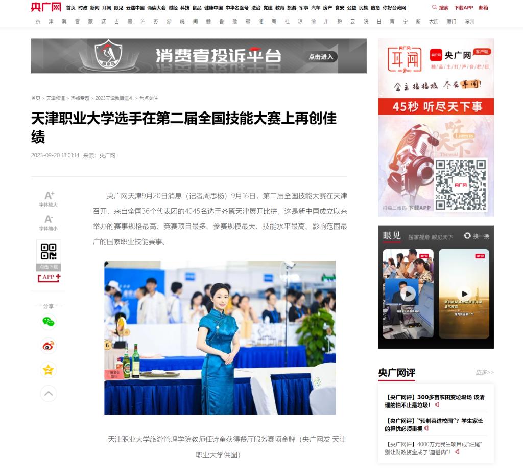 天津职业大学旅游管理学院教师任诗童获得餐厅服务赛项金牌(央广网发 天津职业大学供图)