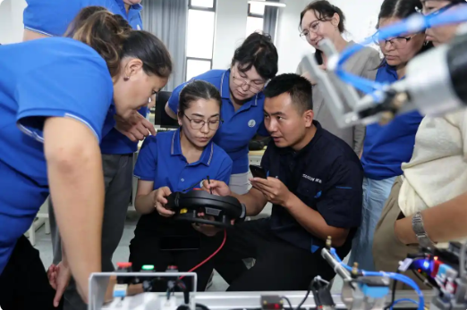 2025年7月,天津职业大学为哈萨克斯坦鲁班工坊开办第一期师资培训班,电子信息工程学院、机电工程与自动化学院为鲁班工坊建设团队教师精心设计培训内容,聚焦专业知识技能、教学方法及工程实践创新项目,为哈萨克斯坦鲁班工坊顺利投入使用奠定了重要的阶段性基础。9月,天津职业大学在哈萨克斯坦建设的第二家鲁班工坊正式揭牌成立,以人工智能技术专业为核心共建方向。机械制造及自动化专业群倾力投入鲁班工坊建设中,不仅参与课程标准制定,还为师资培养贡献力量。上合组织峰会在天津召开期间,哈萨克斯坦科学与高等教育部部长率团到访天津职业大学,实地考察了学校鲁班工坊建设专业实训基地,对鲁班工坊在中外职业教育交流合作等方面发挥的重要作用给予高度评价。
